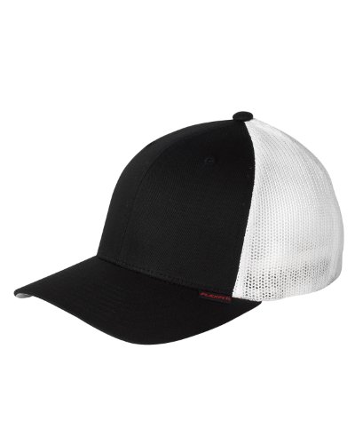 Yupoong Mens Flexfit Mesh Cotton Twill Trucker Cap, Black/ White, One Size Best